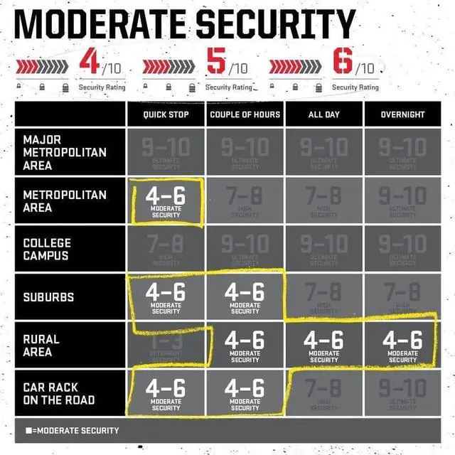 Rated at a 6/10 on our security scale, the Kryptolok Combo U-Lock is good for quick stops in a metropolitan area, a couple rs in the suburbs, or all day & overnight in rural areas