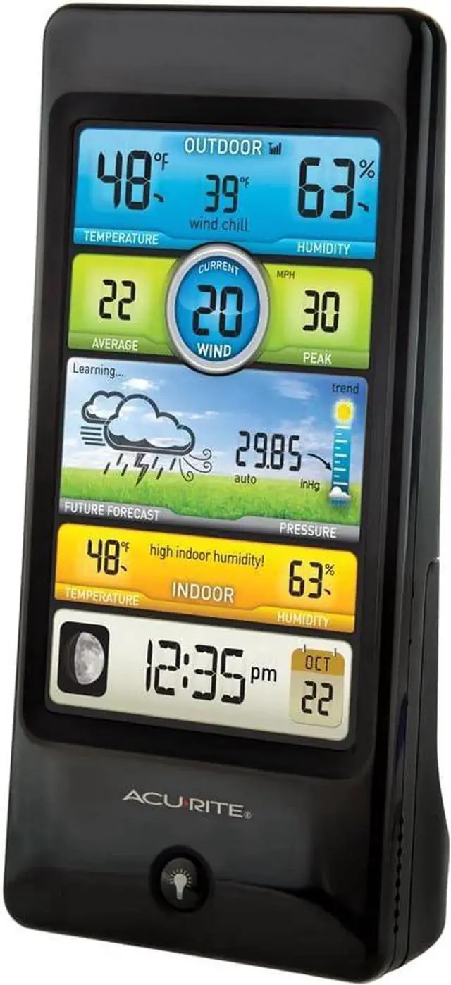 Stay informed of the changing environmental conditions surrounding your home with the AcuRite Professional Color Digital Weather Station with wind speed, temperature and humidity. It's more than accurate, it's AcuRite.