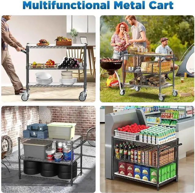 Adjustable Wire Mesh Shelves: The trolley cart are designed with clip sleeves to help you adjust the height of each layer at will (adjustable in 1 inch increments). You can customize the shelf height of this kitchen carts on wheels to fit the size of your items.