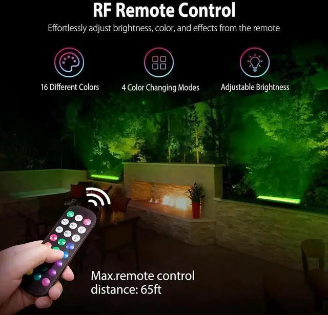 - Linkable & RF Control: Linkable design allows multiple lights to be connected together and controlled by remote to synchronize color changes. The remote works at a distance of up to 65 feet, walls wont block the signal. The memory function retains last settings when turned on. Package includes two remotes