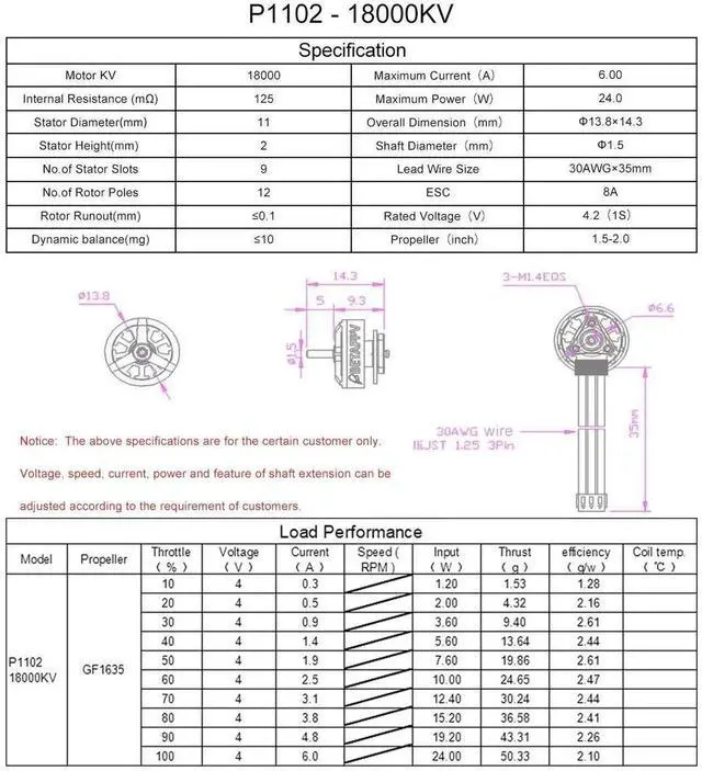 Performance1102 18000KV motors have a good performance in efcien that can provide more thrust for aggressive indoor FPV racing.
