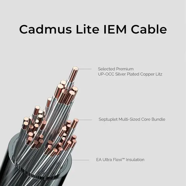 Material & Structure:, Single Material Silver-Plated Copper Litz. Septuplet Multi-sized Core Bundle Connection System: *xed 2-pin (Default) EA Standard Gold Plated Copper Straight Type