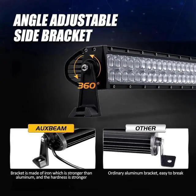 Excellent QualityOur work lights reach IP68 waterproof rating, allowing you to travel safely in severe weather such as rain, fog, and weather. Tempered glass and stainless steel mounting brackets are rust-proof and anti-corrosion, and can withstand harsh outdoor conditions. falseWide ApplicationAuxbeam off-road driving lights are suitable for almost all Jeeps, 4x4, Trucks, Cars, Motorcycles, SUVs, ATVs, Boats, Family Vans. Besides that, this universal offroad led light bar also works great as driving light, fog light, or for emergence use. false- Perfect PerformanceAuxbeam 42 inch 5D straight LED light bar is made of 80pcs*3W intense LED chips.
