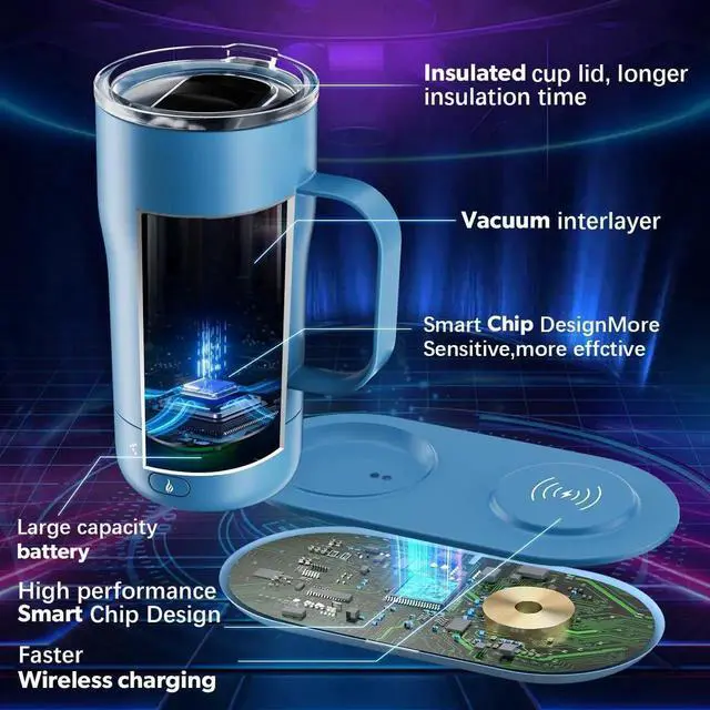 • Patented Heating TechWith a patented heating technology, it can heat without coaster. When no water, the mug will automatically stop heating for safety. This Warmer smart coffee thermos mug works with 4000Ah high-capacity polymer lithium battery, Rechargeable smart mug can last 5-10 hours, It can keep the drink warm all day long when on the charging coaster, The heating temperature range is 86-149. Keep Your Coffee Temperature Constant, keeps your coffee hot for hours.