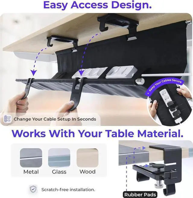 PREMIUM AMERICAN BRAND: delivers cable management under desk products with satisfaction. Innovated cable managment and cord organization with trusted support. Experience a truly organized space with our under desk cable holder.