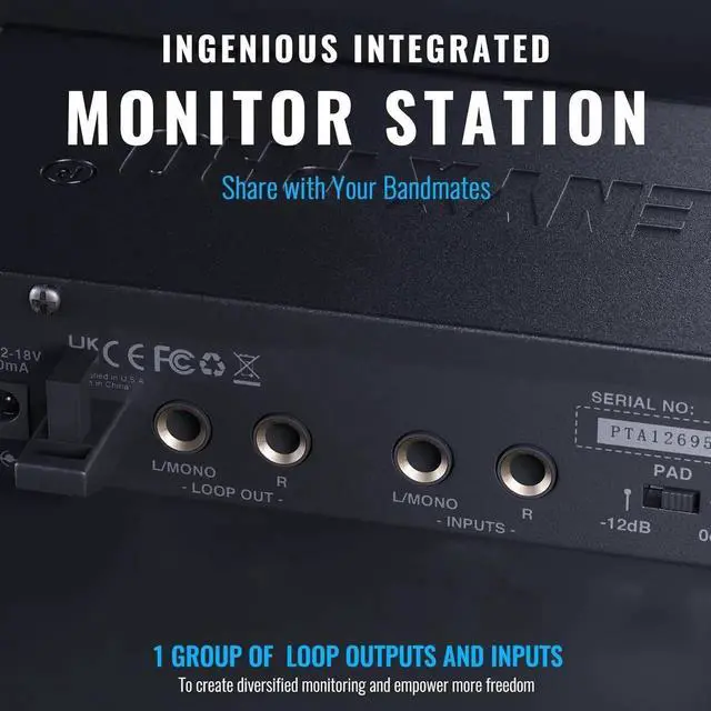 - SEPERATE OUTPUTS: The mono in ear monitor wireless features left and right inputs for personal audio mix with clear mono sound monitoring. Additionally, The sistema de monitoreo in ear also runs a left/right line out back to the soundboard or speaker, allowing original audio signal pass through the PTM-11 transmitter without being affected. The built-in PAD switch helps prevent overload and distortion by reducing excessively loud input signals, ensuring pure monitoring during performances