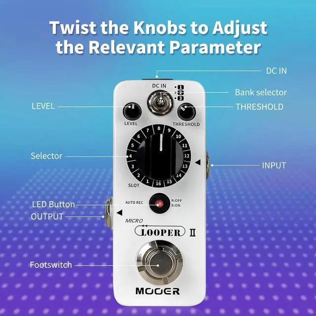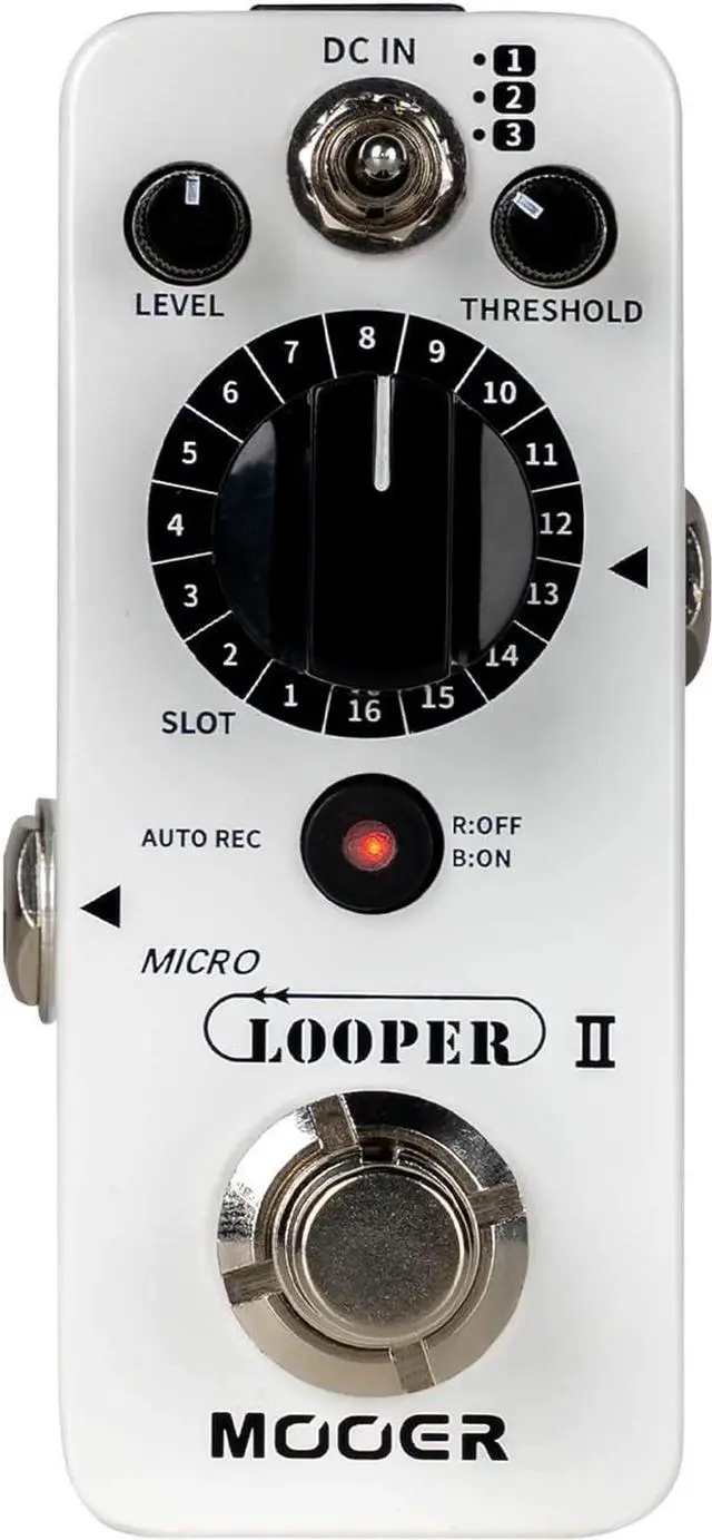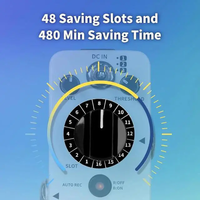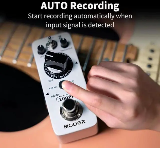 AUTO REC Function---- AUTO REC to start recording automatically when input signal is detected. A faster pace of alignment can reduce a lot of missed maneuvers. Supports customized recognition thresholds. You can also choose to turn off this feature if you don't like it. falseUnlimited Recording Layers---- Unlimited number of stacked recordings and countless inspired overlays. falseSimple to use. Metal casing for ruggedness and durability. false- Multi Saving Slot---- Featuring three saving banks and 16 slots, each slot providing up to 10 minutes.
