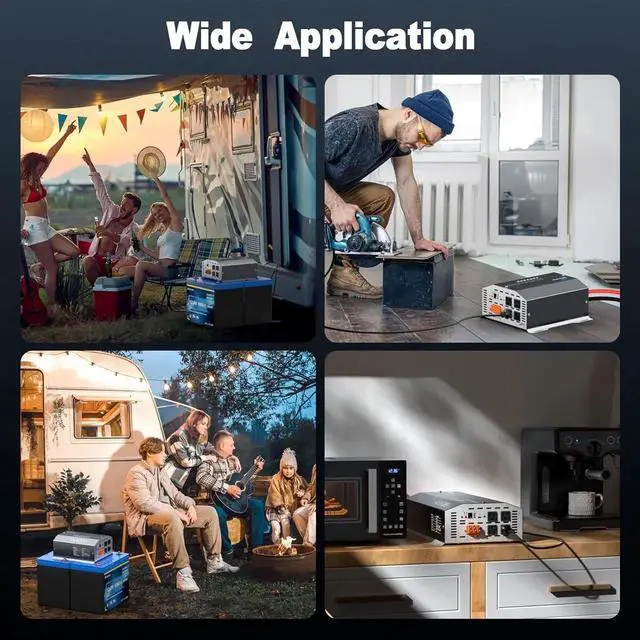 Batteries: The 1500W power inverter is equipped with 4 AC U. S. outlets, USB, and Type-C fast charging ports. Simply connect the 12V battery to the inverter with the power cable to access stable 110V/120V power. Its ideal for off-grid solar, trucks, homes, RVs, boats, travel, camping, and outdoor AC use.