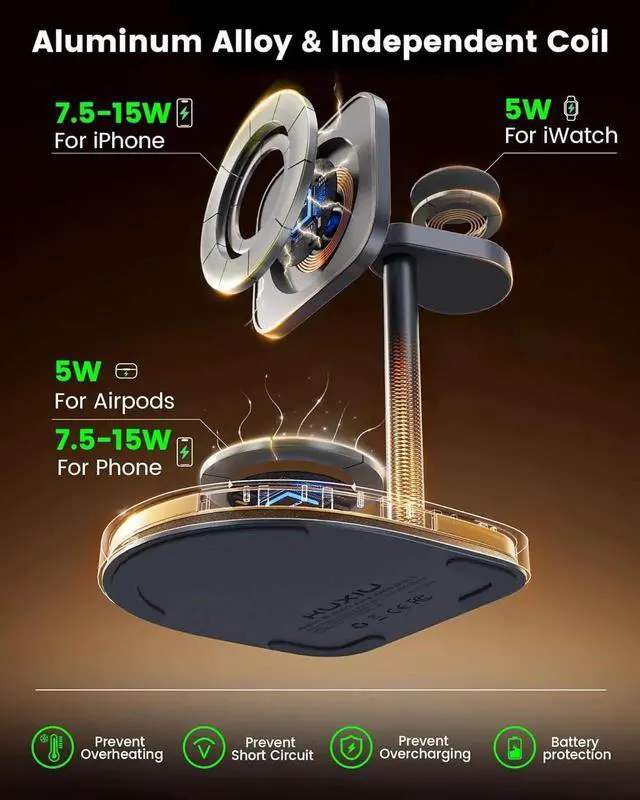 [Strong Magnetic Wireless Charging] Built-in high-quality magnets and 3 wide charging coils for precisely alignment and lock your iPhone in the optimal charging position. Made compatible with Mag Safe, it effortlessly charges your iPhone in both horizontal and vertical orientations. Find Your Perfect Charging Angle.