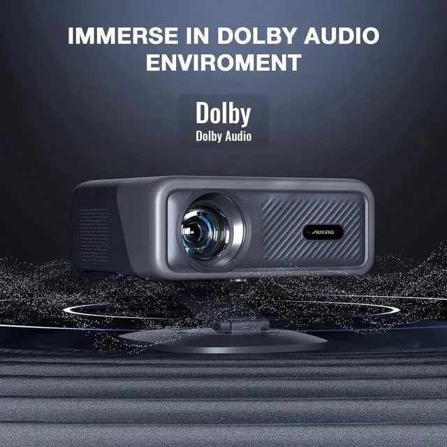 - [Immersive Dolby Audio Experience & Bidirectional Bluetooth] AuKing home theater projector features Dolby-certified Hi-Fi stereo dual speakers, delivering an immersive 3D sound experience. Advanced AI sound balancing technology ensures delicate sound quality and smooth transitions. Blurtooth Projector comes with two-way Bluetooth connectivity allows you to effortlessly connect your devices to stream audio directly or use the projector as a Bluetooth speaker for your favorite music.