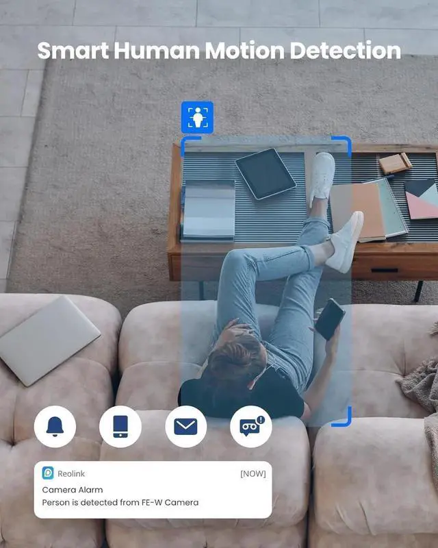 Smart Person Motion Detection & Instant Alerts: This fisheye camera can detect moving persons, record videos when they show up, send you email & push notifications, and deter them with the siren.