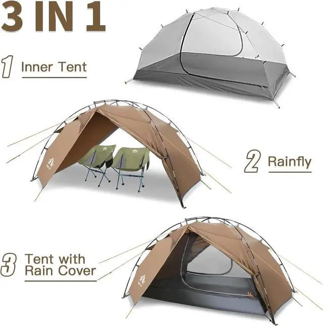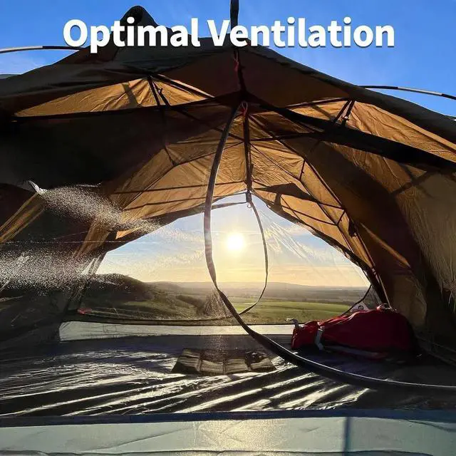 2 Doors with Extra Room: The double layer tent has 2 D-shaped doors with dual zipper opening, conveniently enter or walk out the tent from left or right side. 2 small mesh EAR on top and the extra room in front of door allows the air effectively flow to provide a cool ventilation.