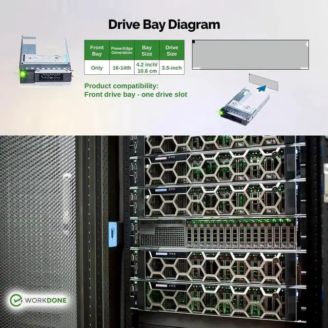 READY TO INSTALL: hard drive trays include all the screws and hardware you need to install. We make our 14th Generation server trays with sturdy material, inspect each one individually, and carefully pack them for safe shipping. NON-OEM/NON-ORIGINAL ACCESSORY PART; Compatibility with part numbers WH5D2, X7K8W, 0X7K8W, Y796F, 0Y796F, 9W8C4, and 09W8C4. Supported ONLY Hot-Plug 4.2 -inch Drive Bay models. NOT compatible when your server has a smaller 2.9 -inch drive bay