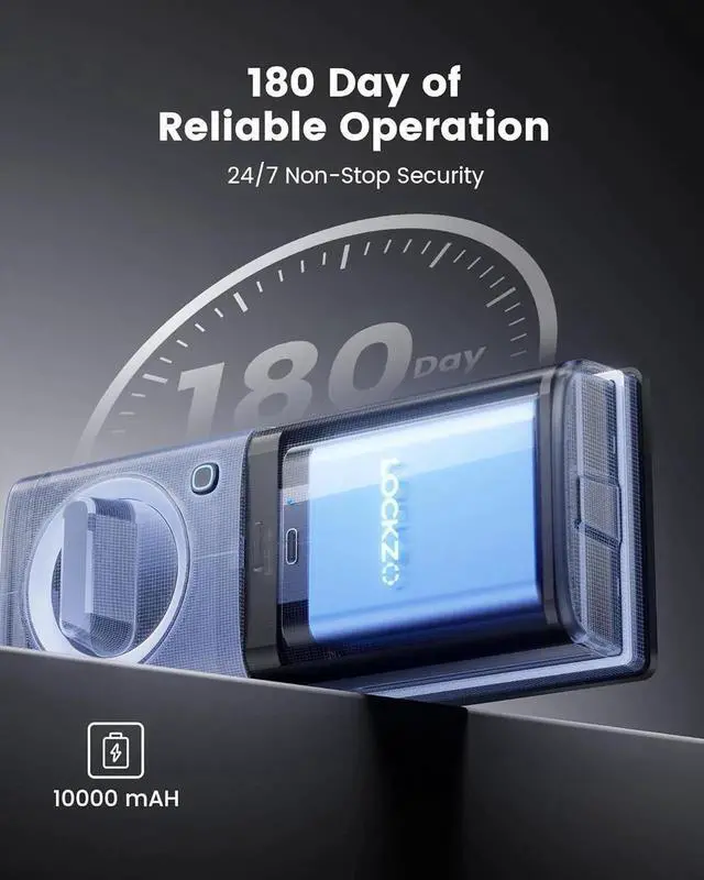 6-Month Battery& Weatherproof10, 000mAh battery lasts 180 days per charge. IP65-rated against dust, rain, and extreme temperatures.