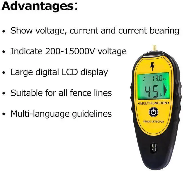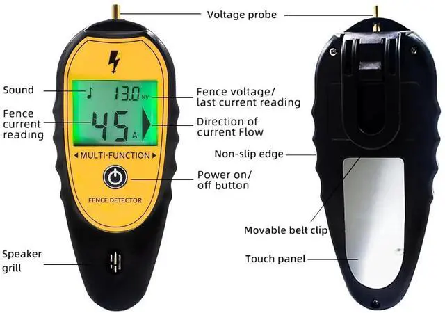 - LCD Display Screen: Large screen with back light clearly show voltage, current and current direction. Help you quickly locate fault and maintence fence.