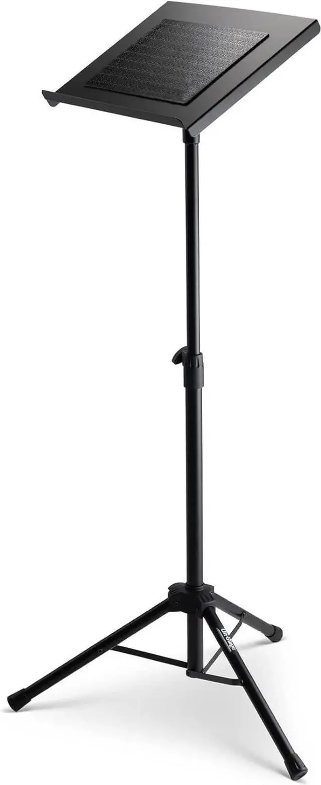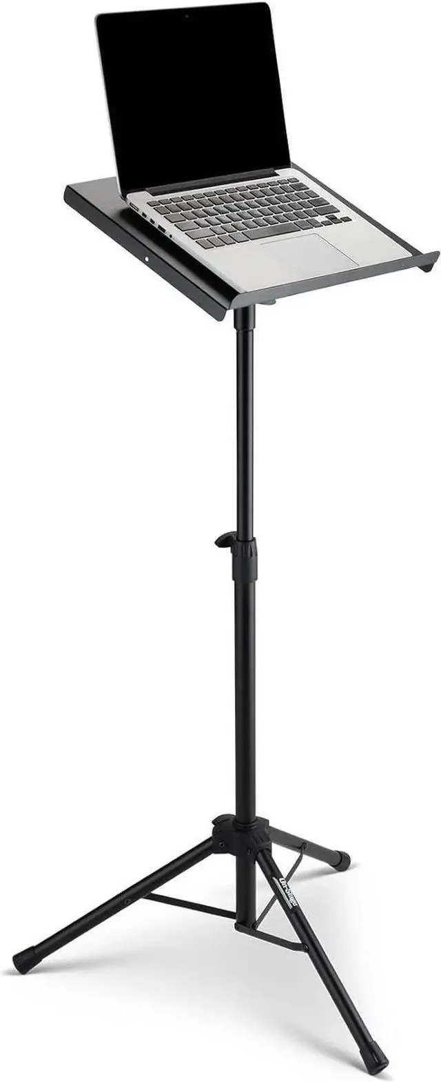 In the Studio or on the road, the durae, versatile, portae and sleek On-Stage LTP7000 puts your laptop right where and when you need it. All steel tripod construction, colete with easy height adjuent knobs and non-slip rubber feet, ensures stability and durability, while the 15.5" x 11" desktop platform colete with sure, smooth angle adjuent features an 11" x 7" non-slip silicone pad for secure, vibration daening laptop placement. Height adjustae from 31" to 51" with ack powder coat finished for spotlight-ready optics and added protection, the LTP7000 provides laptop access as precise and immediate as your performance.