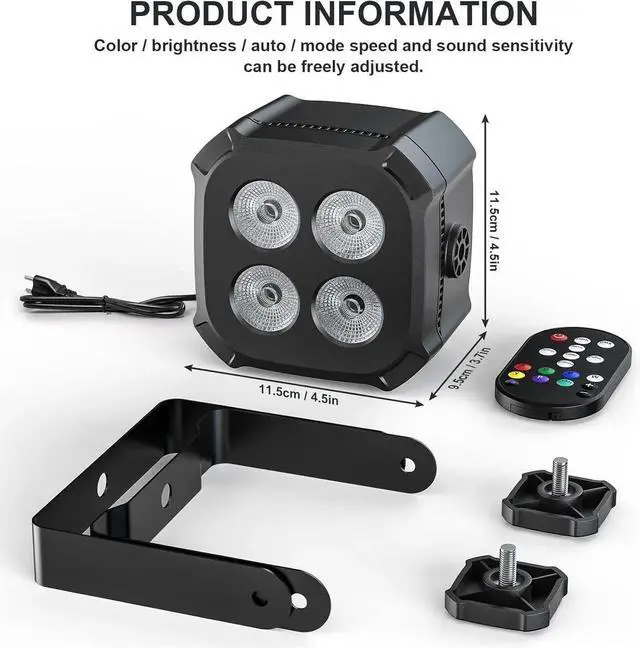 - Lightweight & Easy to Install: The par light weigh 0.4 kg, which is more light than other stage lights. The size of our LED par light is 5.3 * 5.3 * 5.3 Inch. Moreover it is very simple to install and easy to carry and move. You can place the light on the floor, on a stage light stand, or wherever you want.