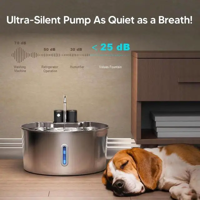 - Engineered for serenity, the whisper-quiet pump operates below 25dBso the only sound youll hear is the soothing flow of water, without disturbing your sleep or startling your pet