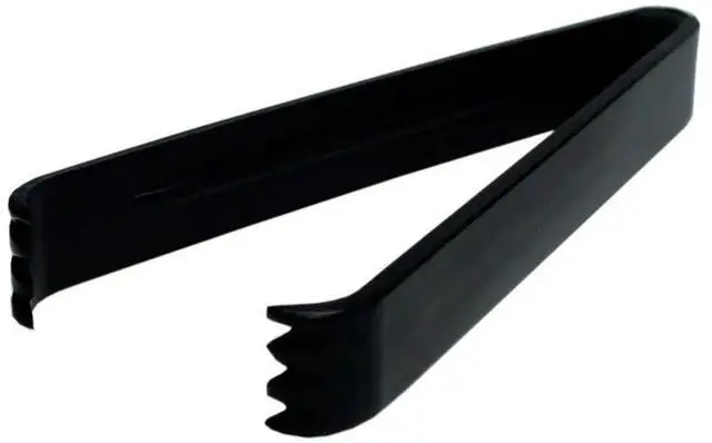 The TN65B-36/4 disposable black plastic serving tong is 6-1/2" long, comes in four packs of 36, is made of polystyrene for rigidity and durability, and is suitable for serving salads and individual pieces of food such as corn on the cob, hot dogs, and breads. It coordinates with many tableware designs and decorations.