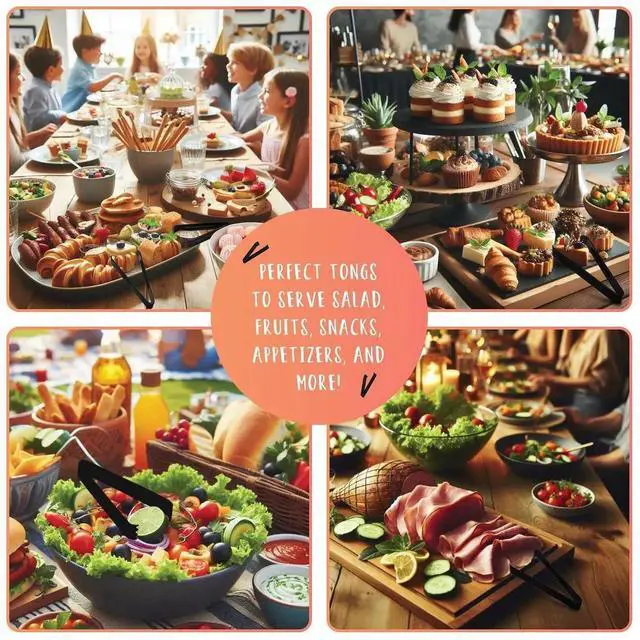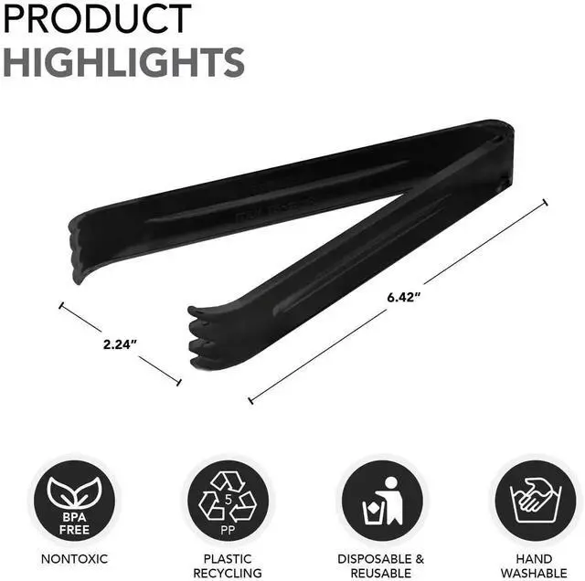 Black plastic serving tong coordinates with other black utensils and many tableware designs and decorations