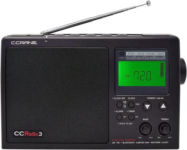 FEATURES: Clock, alarm, sleep timer, headphone jack, adjust display light and 5 one touch memory presets per band. Comes with AC power cord, runs on 4 D size batteries (not included). Extra Long Battery Life of approximately 250 hours while played at a moderate volume. Comes with 1 Year Limited Warranty and C. Crane US based tech support.