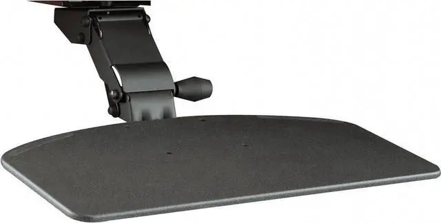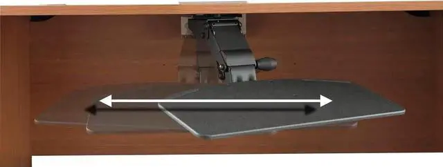 Enjoy a user-friendly desk option with the Articulating Keyboard Tray with a Galaxy finish for accessories that work. Perform comfortably with our Articulating Keyboard Tray that attaches to your desk and retracts under the surface when not in use. This adjustable Keyboard Tray offers a 5.3" height adjustable range position and is capable of 27 degrees of tilt adjustment, with 17 degrees (negative) and 10 degrees (positive) direction, plus15 degrees of forward and backward travel and swivels 180 degrees to the left and right. Includes two non-slip strips to hold keyboard securely in place.