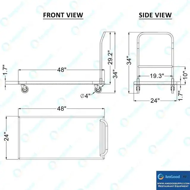 Measuring at 24 in. long x 48 in. wide and featuring a 34 in. high handle, the platform offers generous space for transporting boxes and equipment.