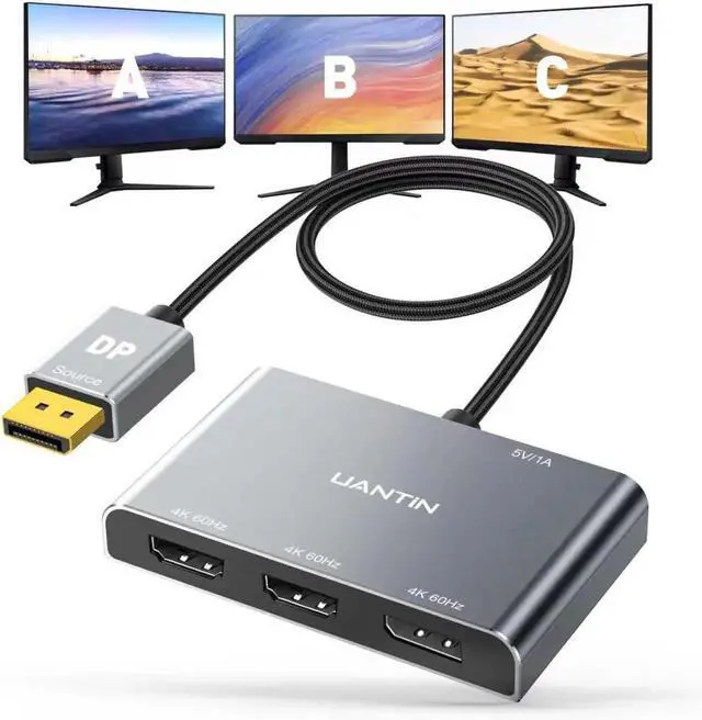 Note: From DP Access to the Source DeviceThis product is a one-way signal conversion (1 in 3 out), you need to connect the DP interface to the graphics card and other source devices, can not be used in reverse. Before using, please make sure that the graphics card supports multi-screen output function, and check whether the HDMI interface version of the monitor is compatible. Durable + Anti-InterferenceDP to Dual HDMI with DP Adapter is designed with all-aluminum casing, efficient heat dissipation to ensure long and stable operation of the device; equipped with high-density braided nylon cable, wear-resistant and anti-pulling, with gold-plated interfaces and tin-plated copper core, effectively reducing signal interference and extending the service life. Plug and PlayNo driver installation required, just connect the power cable included in the package to enable multi-screen expansion. Compatible with Windows 7/8/10/11 system, suitable for DP 1.2 / 1.4 / 2.1 graphics card series, suitable for HDMI 1.2 / 2.0 / 2.1 monitors. Projector, TV, etc. Easy to expand multi-screen working environment
