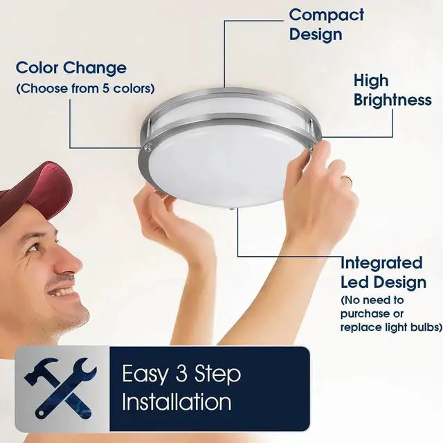 - Save Energy & Money - This small-size surface mounted LED ceiling fixture uses only 20 watts while providing 1400 lumens of bright light, making it an energy-efficient option for any room. With integrated LED chips offering a lifespan of 25, 000 hours (equivalent to 22 years with 3 hours of use per day), replacing your ceiling light bulbs is now a thing of the past. Ideal for those seeking LED lights for bedroom or kitchen lighting fixtures ceilin