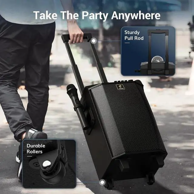 - Design for Convenience: This portable speaker's casing is made from fine and real wood, featuring sturdy swivel wheels and a pull rod design for easy mobility. You can effortlessly carry it to live performances, beach trips, or tailgate partie