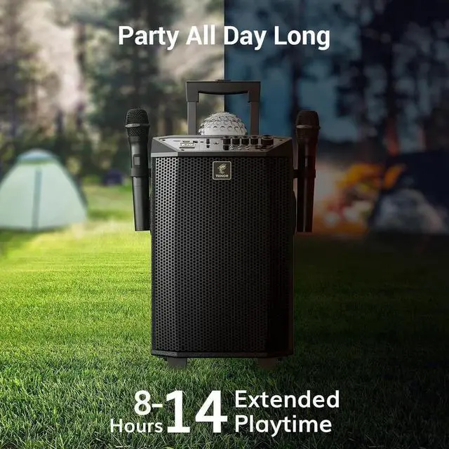 - Ultra-long Battery-life: The karaoke machine features a built-in 7000mAh rechargeable battery with low power consumption. When fully charged, it ensures 12 hours of continuous music playback.