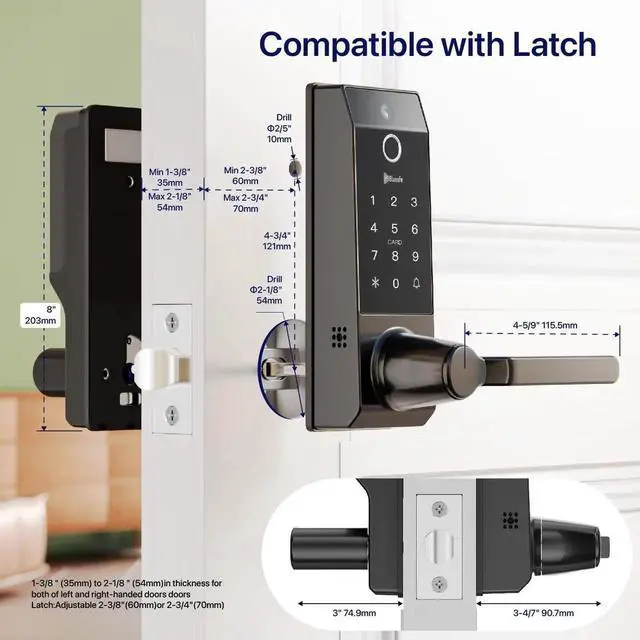 [EASY INSTALLATION FOR RIGHT AND LEFT DOORS] Keyless entry door locks with handle fit right and left doors and can be easily installed with a screwdriver without hiring expensive installers. Keyless entry door lock with handle fits most standard residential doors from 1-2/5 inch to 2-1/8 inch (35 and 54 mm) thick, rear: 2-3/8 inch or 2-3/4 inch (60 mm or 70 mm). *Check door orientation before installation and check door dimensions before purchase.