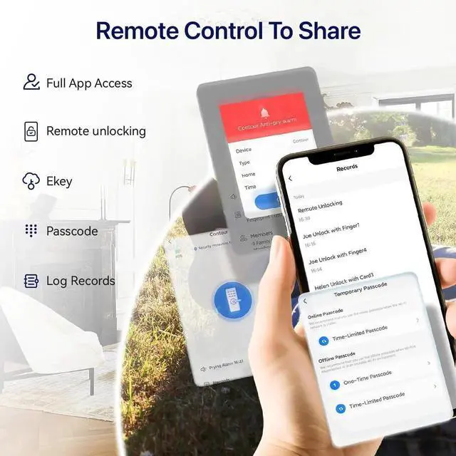 [REMOTE CONTROL WITH DOORBELL CAMERA] When someone presses the doorbell, the smart door lock takes a picture and sends a notification to your phone immediately. You can send a one-time code or slide to unlock the door in the app. Note 1> Remote unlock function is triggered passively by pressing the doorbell on the smart lock, 2> The camera does not have a video call or recording function, 3> Not compatible with smart homes such as Alexa and Google Assistant