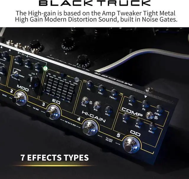 - Perfect for all of your hard rock and heavy metal needs. Designed exclusively for the BLACK TRUCK, this analog distortion circuit delivers "amp-like' distortion with buckets of gain on tap. BLACK TRUCK is a warm and natural analog overdrive circuit with a distinct mid hump. At higher gain settings it can emulate a vintage amplifier being pushed into breakup. At lower gain settings it is perfect for pushing the HI-GAIN module for solos or as a warm boost for the guitar.