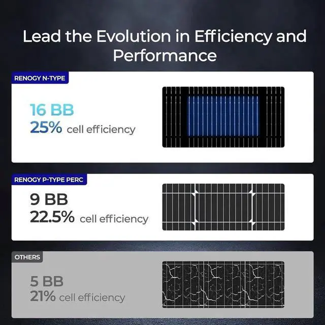 - Unmatched Cell Efficiency - Featuring advanced N-Type solar cells with 16BB technology, this high-performance panel achieves 25% efficiency. The 200 watt solar panel enhances photoelectric conversion while reducing hot spots and micro-cracks, ensuring longer lifespan and superior performance.