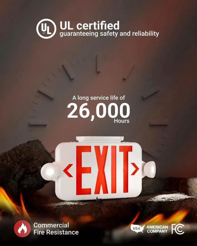 EASY INSTALL - Our LED exit sign features a hassle-free installation with universal mounting and all hardware included, making setup quick and easy. false COMMERCIAL GRADE - Our emergency exit sign, UL Listed and made of fire-resistant ABS plastic, features a backup battery, test switch, and works with 120-277V for offices, schools, and retail spaces. false SUNCO BENEFITS - 3 Year Protection! We uphold the highest standards for all our products by testing each product for optimal performance and safety. Sunco is proudly based in the USA, offering quality products at affordable prices backed by knowledgeable support specialists.