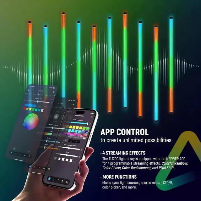 Multiple Professional Control Modes TL120C can be manipulated by physical buttons or wirelessly controlled by the 2.4G system and the APP. Thanks to our proprietary Network Meshing technology, you can simultaneously control TL120C with hundreds of other lights or program multiple TL120C light sticks for dynamic and animated effects. Users can also use DMX512 consoles to control TL120Cprecisely