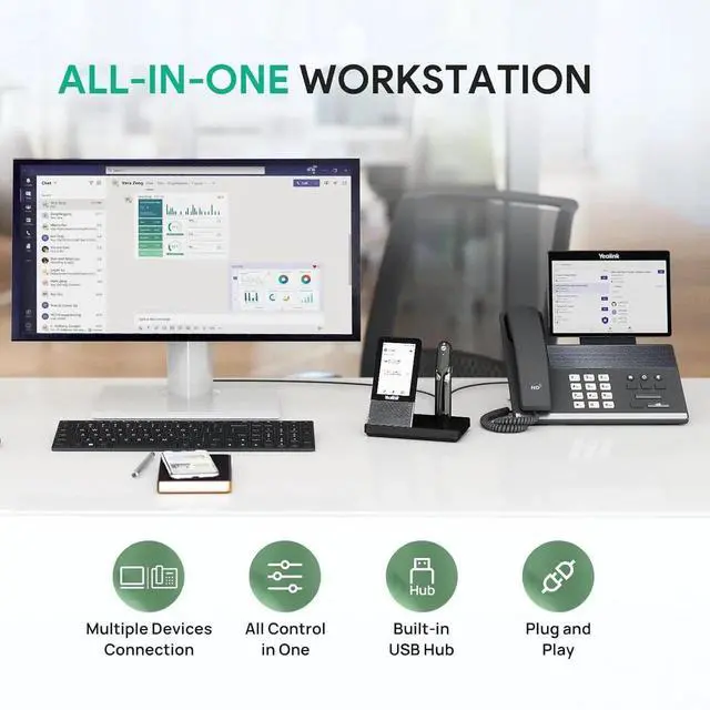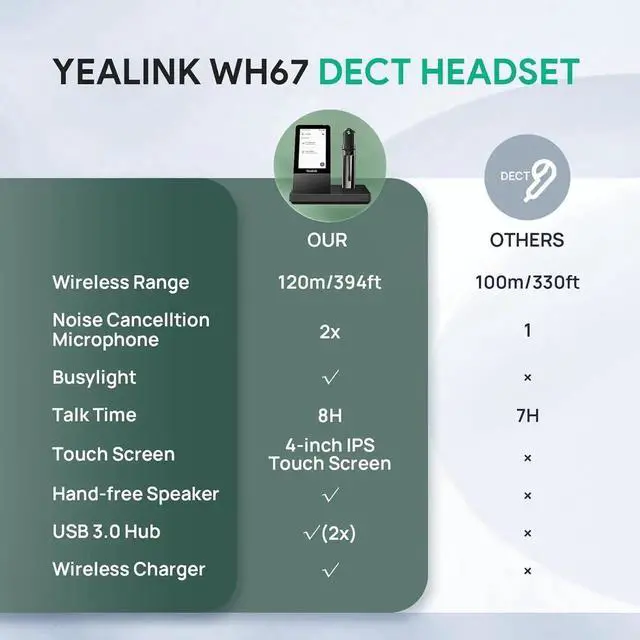 Teams&Zoom Certified: The WH67 wireless headset is certified for teams. plug & plug, multiple options for your Teams work call control, you can easily control muting and answering calls, on your computer, on the headset bases touch screen, and on the headset itself.