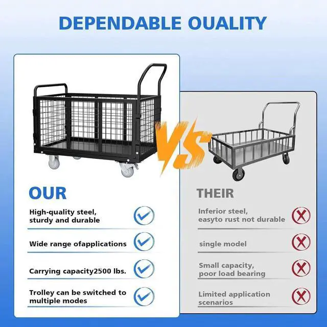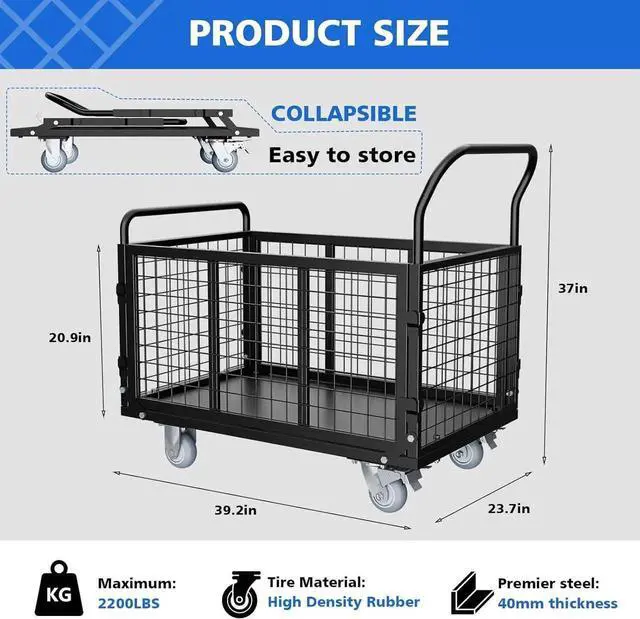 Platform Truck Cart with Cage6 in 1 Foldable Heavy Duty Platform CartThe Platform Truck Cart can be adjusted according to your needs and you can choose the form you need