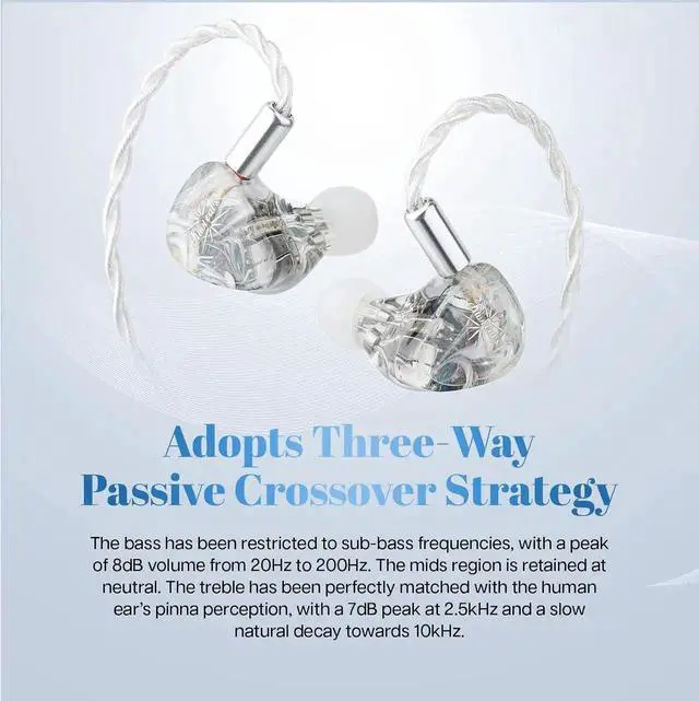 - Orchestra Lite utilizes a three-way passive crossover strategy to achieve intricate layering and reduce total harmonic distortion. The bass has been restricted to sub-bass frequencies, with a peak of 8dB volume from 20Hz to 200Hz. The mids region is retained at neutral, with only a 1dB difference from 200Hz to 800Hz. The treble has been perfectly matched with the human ears pinna perception, with a 7dB peak at 2.5 kHz and a slow natural decay towards 10kHz