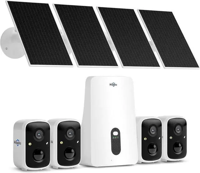 Remote Viewing & Cotrolling via 2.4GH z/5GHz, check wireless cameras remotely on your phone/PC/Padperfect for travelers and vacation rentals, dual-band WiFi connectivity and upgrade Wi-Fi pro technology offers stable signal and longer coverage, stream crystal-clear video, even when the kids are gaming and streaming. Solar Powered Security Camera, install anywhere, 100% wirelessgreat for off-grid gates, barns, or RVs. 4 hours directly sunlight daily keep the cameras 365 days running. Design for outdoor security, the camera with IP66 waterproof. PIR/AI Motion Detection, Hiseeu wireless secruity cameras, PIR reduces alerts, AI detection for human, Vehical, Pets (Upgrade cloud plan, incurs extra fees).