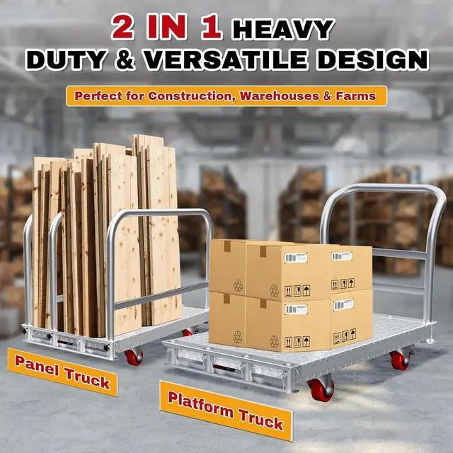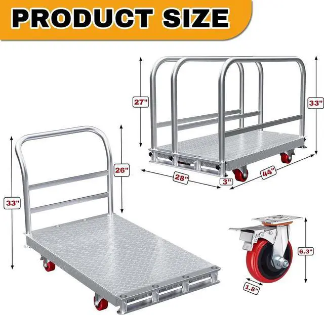 SMOOTH & STABLE- Our panel cart equipped with 2 lockable swivel wheels, offers smooth and stable movement. The swivel design enables easy maneuverability around obstacles, while the locking feature ensures the cart stays in place when needed, whether you're loading, unloading, or parked. This combination of mobility and stability streamlines your material - handling tasks