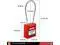 Premium Cae Padlock - (10) Red LOTO locks keyed different with 3-1/8 inch long flie steel cae shackle, 2 keys per lock, ideal for hard-to-reach switches, breakers, and handles