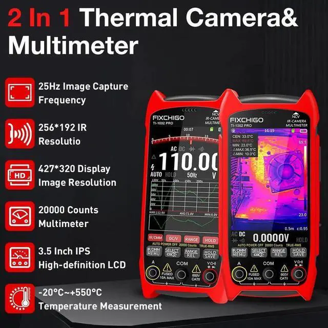 2-in-1 Thermal Imaging Camera with Multimeter The ultimate tool for professionals! This compact and lightweight device
