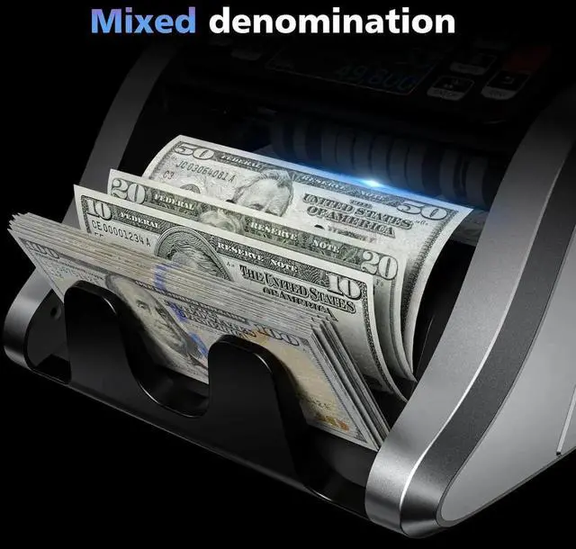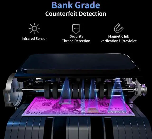 and Quiet: Count over 1200 bills per minute smoothly and accurately with minimal noise. The high-capacity hopper holds up to 200 bills, accommodating high-volume counting needs without interruption.