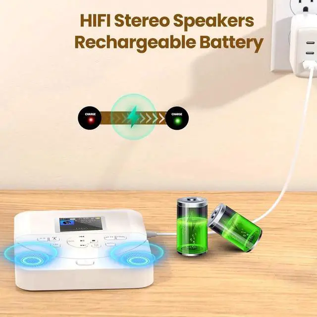 Rechargeable CD Player: Built-in 2000mAh rechargeable battery so it can use outside more convenient.