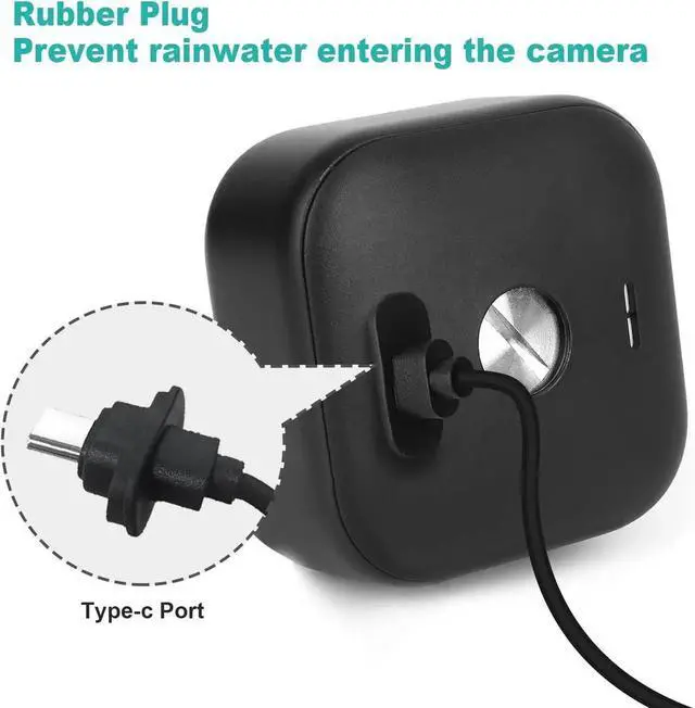 Waterproof design: The USB-C charging cable comes with a waterproof rubber plug that fits tightly into the blink outdoor 4 (4th gen) camera's charging port, preventing rainwater from entering the camera through the camera charging connector.
