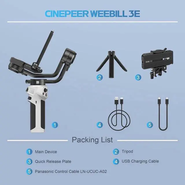 Gimbal that Fits Well in Your HandAs compact as an A4 paper, WEEBILL 3E is your perfect companion on the go. The compact body and ergonomically designed handle make it a joy to carry and use, turning hours-long filming sessions into a breeze.falseAdvanced Algorithm Makes Smooth ExperienceOur intelligent cloud camera gimbals steady your vision to reveal life's captivating details. Advanced algorithms pave the way for buttery smooth footage as the wide axis arm cradles cameras of different sizes . The strong motors also propel each pan and transition with graceful ease.falseBluetooth Shutter ControlWEEBILL 3E liberates your camera through Bluetooth wireless control. Start and stop recordings or snap photos with just the video button and break free from tangled wires and roam unencumbered through limitless perspectives.false