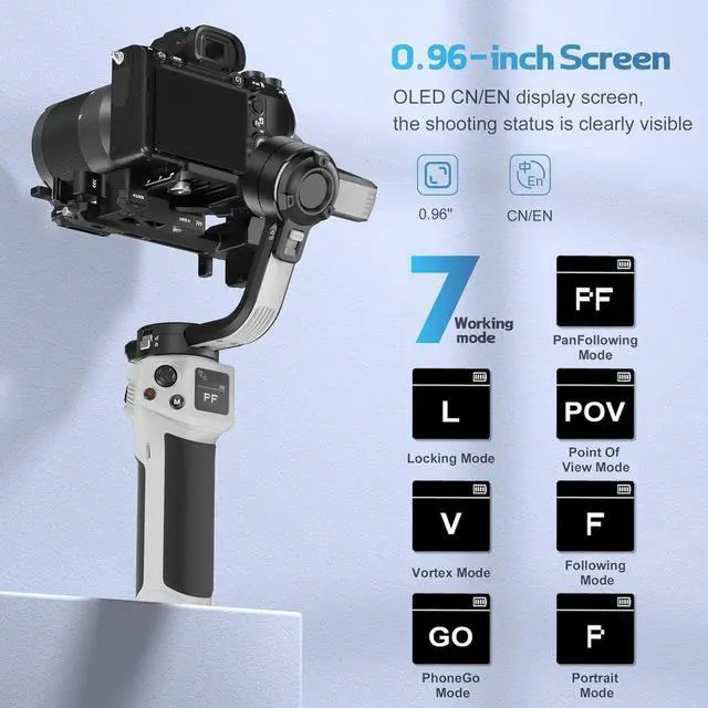 CINEPEER WEEBILL 3E Mirrorless Gimbal Lightweight Stabilizer, Up to 3kg/6.6lbs Payload, 3-Axis Camera Gimbal for Canon/Sony/Panasonic/Nikon, Bluetooth Shutter Control, Native Vertical Shooting