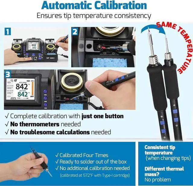 Automatic Calibration: Corrects precision solde iron's temperature discrepancies across different tips; keeps micro solde kit temperature consistent; includes thermocouple and integrated tools for easy use and replacement